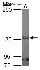 Western Blot analysis of Laminin beta 3 using anti-Laminin beta 3 Polyclonal Antibody (PA5-29161), in A431 Cell Lysate (30 ug of cell lysate) and at a dilution of 1:500.