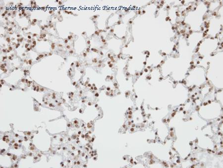 Immunohistochemical analysis of paraffin-embedded lung using Pokemon (PA5-28144) antibody at 1:100 dilution.