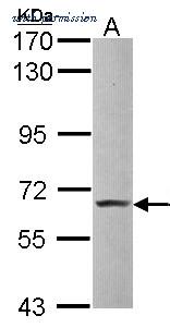Western Blot analysis of Pokemon using anti-Pokemon Polyclonal Antibody (PA5-28144), in Hep G2 Cell Lysate (30 ug of cell lysate) and at a dilution of 1:1000.