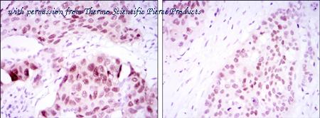 Immunohistochemical analysis of paraffin-embedded lung cancer tissues (left) and esophageal cancer tissues (right) using SOX2 antibody with DAB staining.