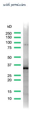 Western blot analysis of MCF7 Cells using anti-SOX-2 Monoclonal Antibody (MA5-16399). The recommened dilution for this antibody in western blot applications is 1:25.