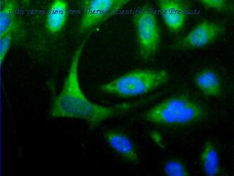 Immunofluorescence analysis of methanol-fixed HeLa cells using PA5-21487 anti-Homer antibody at 1:500 dilution.