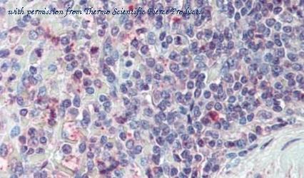 Immunohistochemistry staining of human tonsil. tissue using anti-CD70 polyclonal antibody (PA5-32700). Immunohistochemistry of formalin-fixed, paraffin-embedded tissue after heat-induced antigen retrieval.