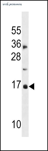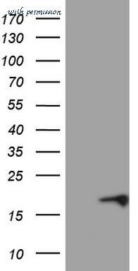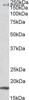 Anti p16-INK4A (S152) Antibody at 1:2000 dilution + HeLa whole cell lysates Lysates/proteins at 20 ug per lane. Secondary Goat Anti-Rabbit IgG, (H+L), Peroxidase conjugated at 1/10000 dilution Predicted band size : 17 kDa Blocking/Dilution buffer: 5% NFDM/TBST.