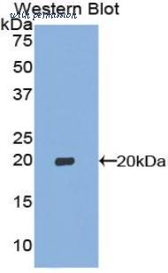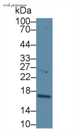 Western Blot; Sample: Human Hela cell lysate; Primary Ab: 1µg/ml Rabbit Anti-Human CDKN2A Antibody Second Ab: 0.2µg/mL HRP-Linked Caprine Anti-Rabbit IgG Polyclonal Antibody