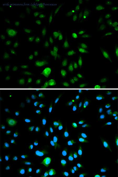 Immunofluorescence analysis of A549 cells using CDKN2A antibody.