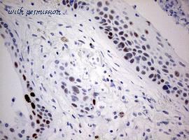 Anti-p16INK4A antibody IHC of human prostate. Immunohistochemistry of formalin-fixed, paraffin-embedded tissue after heat-induced antigen retrieval. Antibody dilution 1:500.