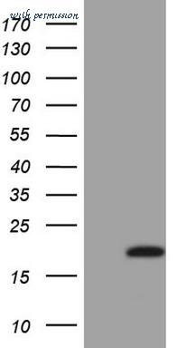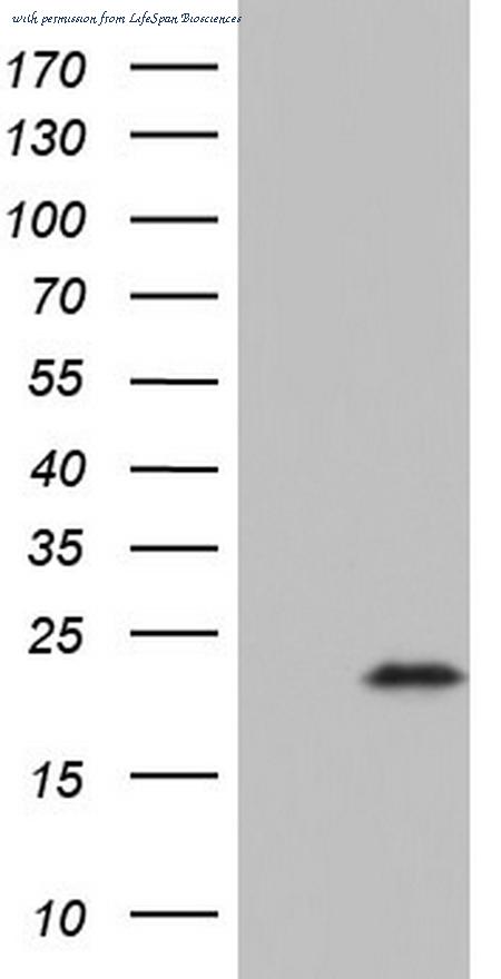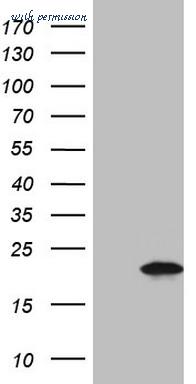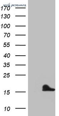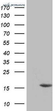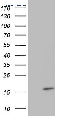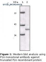 Western blot of P16 mouse mAb against truncated P16 recombinant protein.