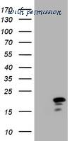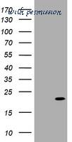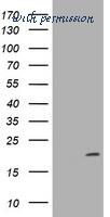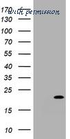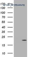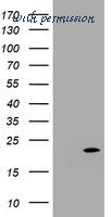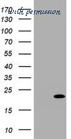 Anti-p18 INK4c Antibody at 1:1000 dilution + HeLa whole cell lysates Lysates/proteins at 20 ug per lane. Secondary Goat Anti-Rabbit IgG, (H+L),Peroxidase conjugated at 1/10000 dilution Predicted band size : 18 kDa Blocking/Dilution buffer: 5% NFDM/TBST.