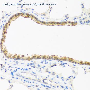 Immunohistochemistry of paraffin-embedded rat lung tissue.