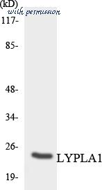 Western blot of LYPLA1 antibody