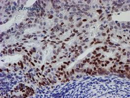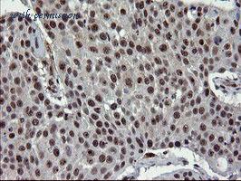 IHC of paraffin-embedded Adenocarcinoma of Human endometrium tissue using anti-UBE2E3 mouse monoclonal antibody.