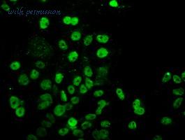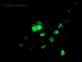 Anti-UBE2E3 mouse monoclonal antibody immunofluorescent staining of COS7 cells transiently transfected by pCMV6-ENTRY UBE2E3.