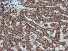 IHC of paraffin-embedded Human liver tissue using anti-UBE2E3 mouse monoclonal antibody.
