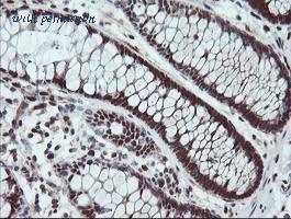 IHC of paraffin-embedded Human colon tissue using anti-UBE2E3 mouse monoclonal antibody. (Heat-induced epitope retrieval by 10mM citric buffer, pH6.0, 100C for 10min).