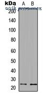 Western blot analysis of UBE2E3 expression in A549 (A); PC12 (B) whole cell lysates.