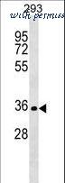 SIX2 Antibody western blot of 293 cell line lysates (35 ug/lane). The SIX2 antibody detected the SIX2 protein (arrow).