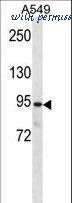 PKP3 Antibody western blot of A549 cell line lysates (35 ug/lane). The PKP3 antibody detected the PKP3 protein (arrow).