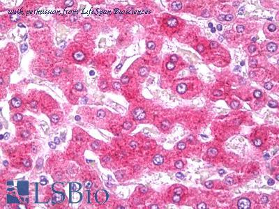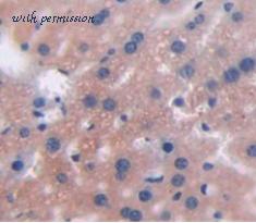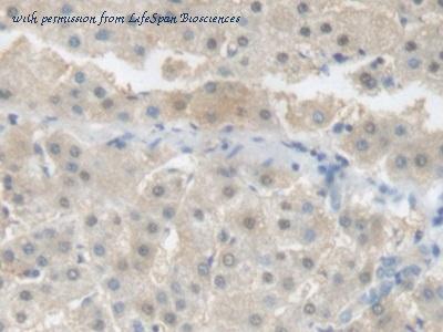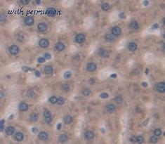 Immunohistochemistry (IHC) analysis of CRP pAb in paraffin-embedded human normal liver tissue.