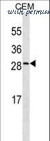 Western blot analysis of lysates from HeLa cells, using CRP antibody.