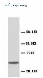 Western Blot; Sample: Bovine Serum; Primary Ab: 3µg/ml Rabbit Anti-Bovine CRP Antibody Second Ab: 0.2µg/mL HRP-Linked Caprine Anti-Rabbit IgG Polyclonal Antibody