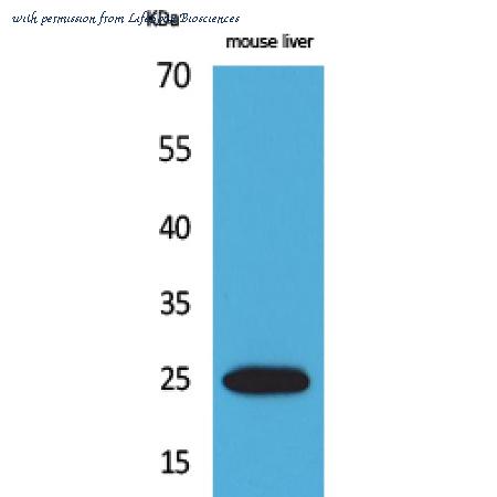 Western Blot; Sample: Mouse Liver lysate; Primary Ab: 3µg/ml Rabbit Anti-Rat CRP Antibody Second Ab: 0.2µg/mL HRP-Linked Caprine Anti-Rabbit IgG Polyclonal Antibody