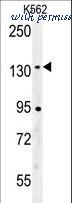 CILP2 Antibody western blot of K562 cell line lysates (35 ug/lane). The CILP2 antibody detected the CILP2 protein (arrow).