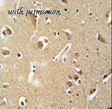 CILP2 antibody immunohistochemistry of formalin-fixed and paraffin-embedded human brain tissue followed by peroxidase-conjugated secondary antibody and DAB staining.