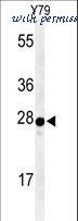 Western blot of AANAT Antibody in Y79 cell line lysates (35 ug/lane). AANAT (arrow) was detected using the purified antibody.