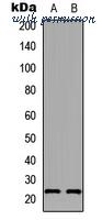 Western blot analysis of AANAT expression in A549 (A); PC12 (B) whole cell lysates.