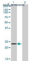 Western blot of CITED4 expression in transfected 293T cell line by CITED4 monoclonal antibody (M08), clone 4F6.