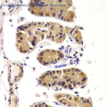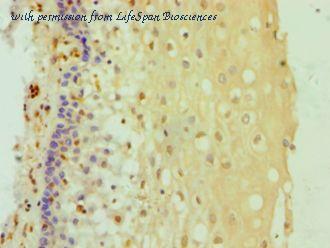 Immunohistochemistry of paraffin-embedded human cervical cancer using antibody at 1:100 dilution.