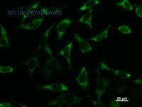 Immunofluorescence of DDX3 in HepG2 cells with DDX3 antibody at 20 ug/ml.