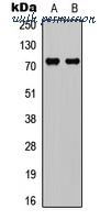 Western blot of DDX3 in HepG2 cell lysate with DDX3 antibody at (A) 1 and (B) 2 ug/ml.