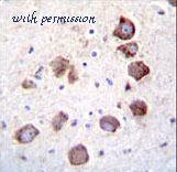 Immunohistochemistry analysis of EGF antibody in paraffin-embedded human brain tissue.