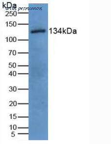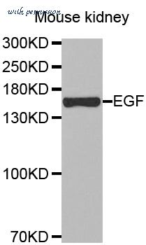 Western blot analysis of extracts of Mouse kidney tissue, using EGF antibody.