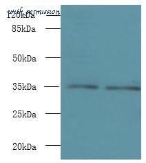 Western blot. All lanes: NAIF1 antibody at 6 ug/ml. Lane 1: Mouse brain tissue. Lane 2: Mouse heart tissue. Secondary Goat polyclonal to Rabbit IgG at 1:10000 dilution. Predicted band size: 35 kDa. Observed band size: 35 kDa.