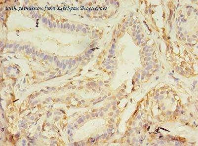 Immunohistochemistry of paraffin-embedded human breast cancer using antibody at dilution of 1:100.