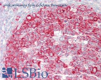 Immunohistochemistry of paraffin-embedded human tonsil tissue using CSB-PA15905A0Rb at 1:100 dilution. This image was taken for the unconjugated form of this product. Other forms have not been tested.