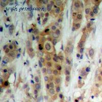 Formalin-fixed and paraffin-embedded human breast carcinoma reacted with AKT1 antibody , which was peroxidase-conjugated to the secondary antibody, followed by DAB staining. This data demonstrates the use of this antibody for immunohistochemistry; clinical relevance has not been evaluated.
