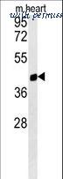 PTGR1 Antibody western blot of mouse heart tissue lysates (15 ug/lane). The PTGR1 antibody detected PTGR1 protein (arrow).