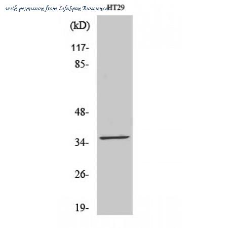 Western blot of LTB4DH (L105) pAb in extracts from HT-29 cells.