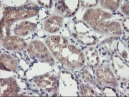 IHC of paraffin-embedded Human Kidney tissue using anti-TMEFF2 mouse monoclonal antibody.