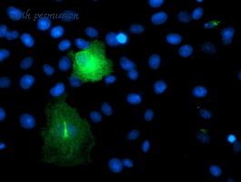 Anti-TMEFF2 mouse monoclonal antibody immunofluorescent staining of COS7 cells transiently transfected by pCMV6-ENTRY TMEFF2.