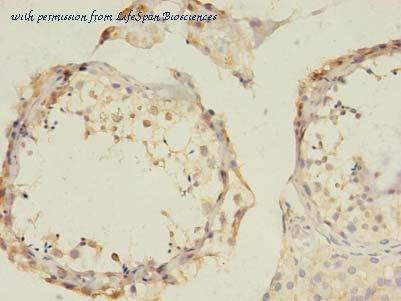 Immunohistochemistry of paraffin-embedded human testis using antibody at dilution of 1:100.
