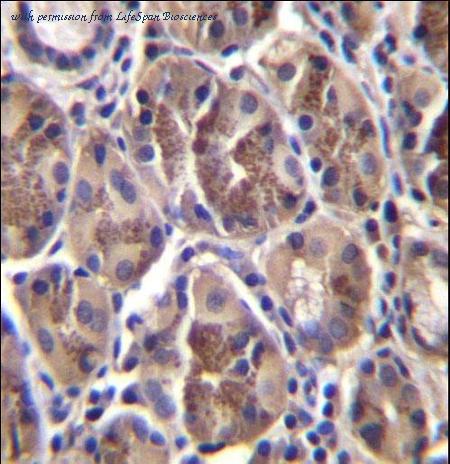 AMELX Antibody immunohistochemistry of formalin-fixed and paraffin-embedded human stomach tissue followed by peroxidase-conjugated secondary antibody and DAB staining.