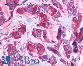 Anti-GPR110 antibody IHC of human Breast, Carcinoma. Immunohistochemistry of formalin-fixed, paraffin-embedded tissue after heat-induced antigen retrieval.