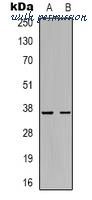 Western blot analysis of GHITM expression in HeLa (A); Ramos (B) whole cell lysates.