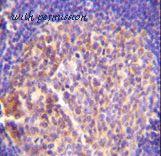 GRK6 Antibody immunohistochemistry of formalin-fixed and paraffin-embedded human tonsil tissue followed by peroxidase-conjugated secondary antibody and DAB staining.