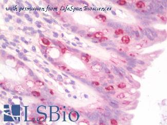 Anti-GRK6 antibody IHC staining of human colon. Immunohistochemistry of formalin-fixed, paraffin-embedded tissue after heat-induced antigen retrieval. Antibody concentration 10 ug/ml.